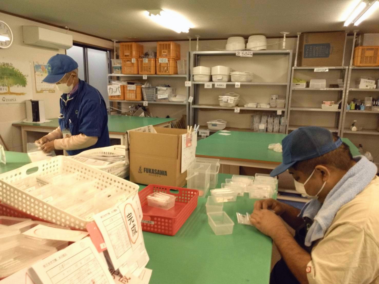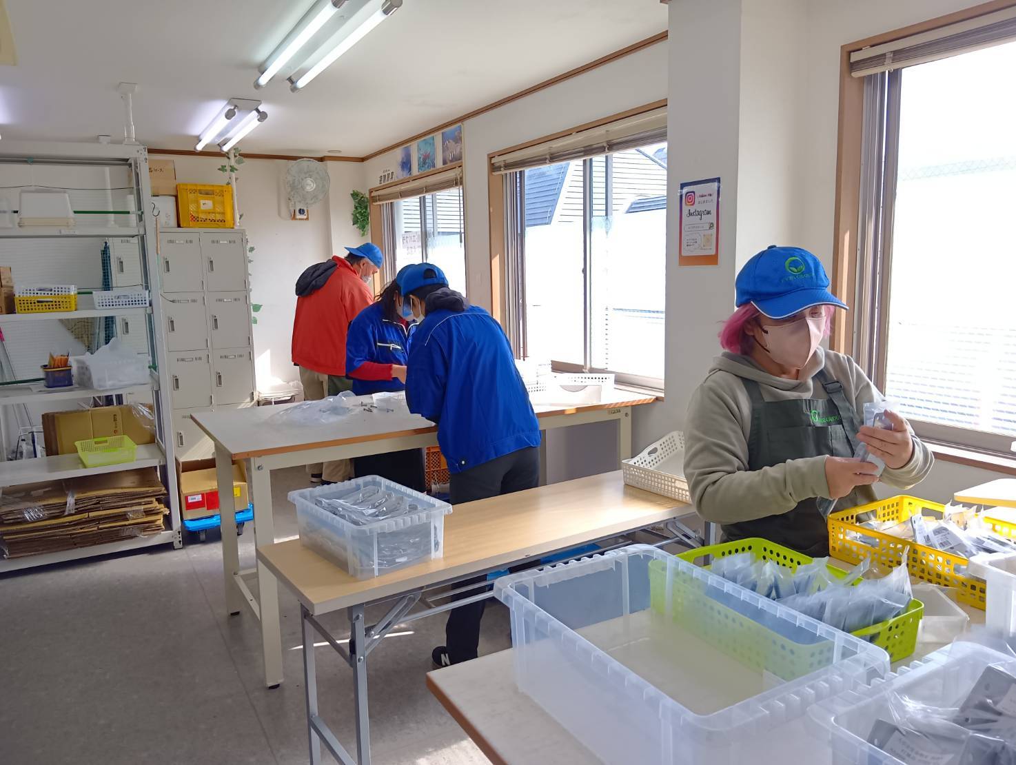エバプラは8つの事業所を運営しています。 各8つの事業所内では、職員の指導のもと、利用者とさまざまな軽作業を行っております。 作業空間の管理を徹底しており、清潔・整理整頓された空間でよりよい作業が行えるよう常に全員で心掛けております。 商品をお預かりするところから納品まで、責任を持って行います。
